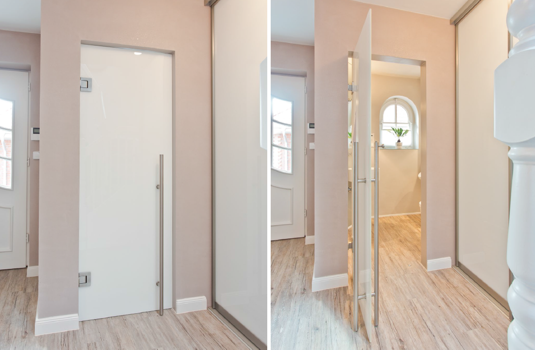 All fittings of MWE’s stainless steel hinge PT.7110 are concealed under elegant magnetic caps. The hinges are made of solid material, but still look slim and elegant. Closing pressure of the locking mechanism can be reduced for low weight doors on demand. Thanks to small clearances Motion hinges can also be installed in wet areas. The hinges are available as a wall-mounted and a glassmounted version – both have a load bearing capacity of 75 kg (165 lbs) per door leaf.